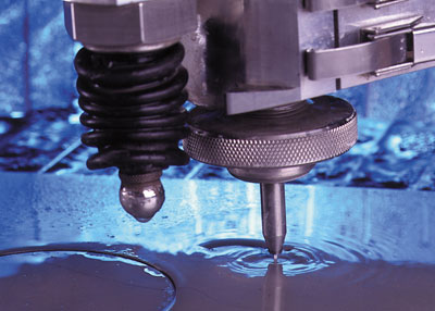Hőmentes, nagy pontosságú, magas nyomású vízsugárral történő precíziós vágás, szükség szerint abrazív anyaggal kiegészítve.